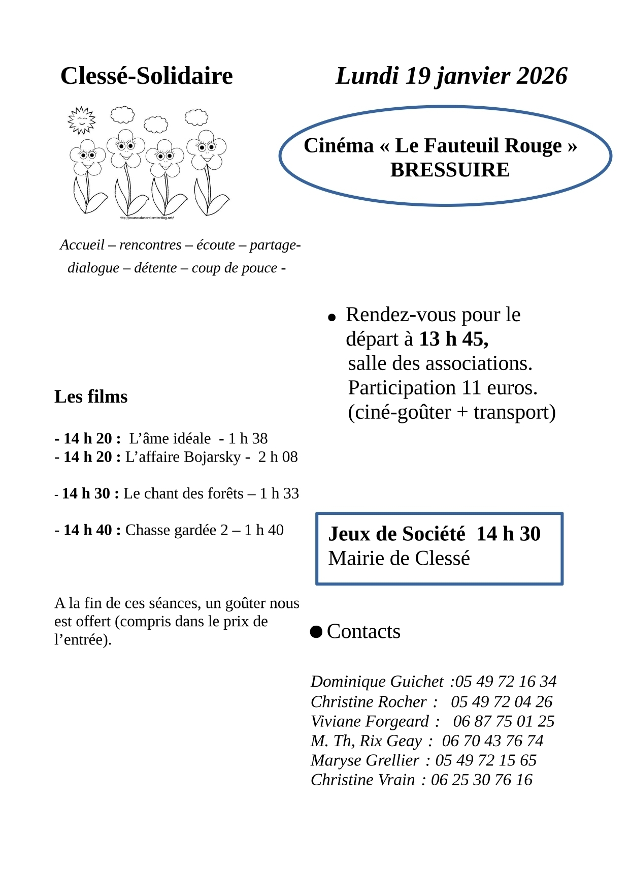 Clessé solidaire - Lundi 19 janvier 2026